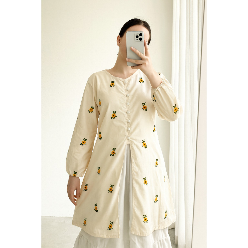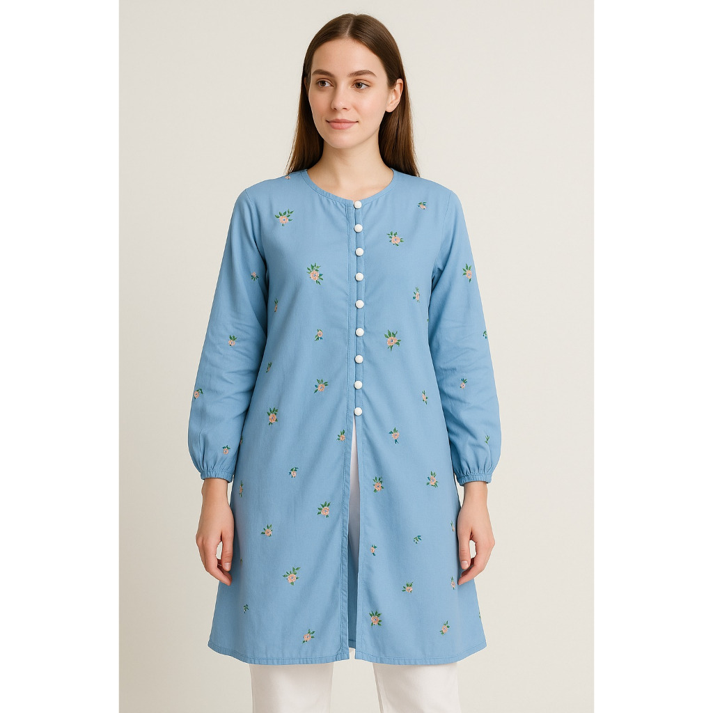 Atasan SABILA SLIT TUNIK Katun Motif Fit to L