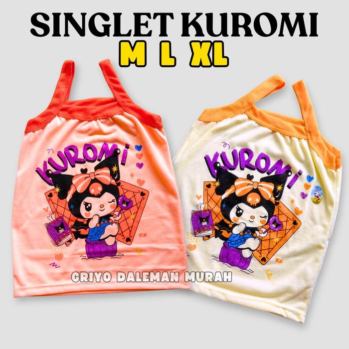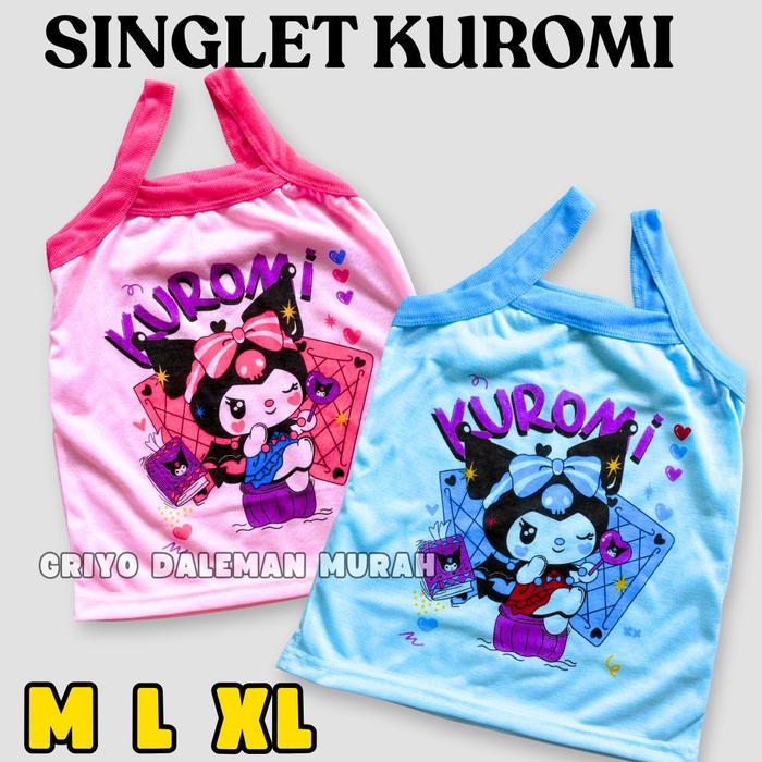 12 Pcs Kaos Dalam Anak Singlet Anak Perempuan Motif Kartun Kuromi Katun Tanktop Anak Lucu - Isi 3 Mix Warna, M