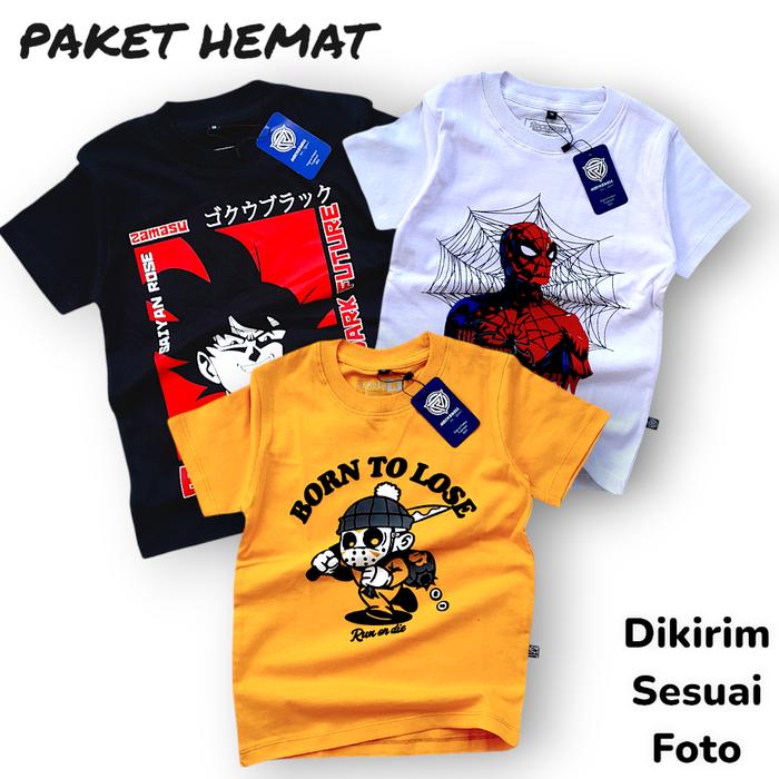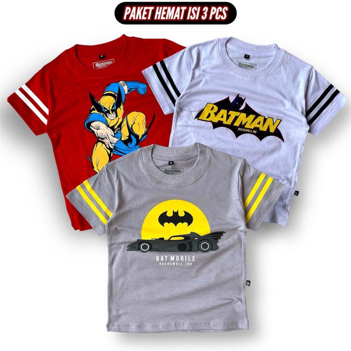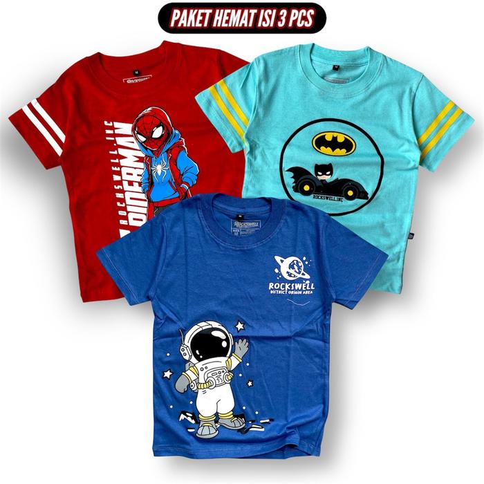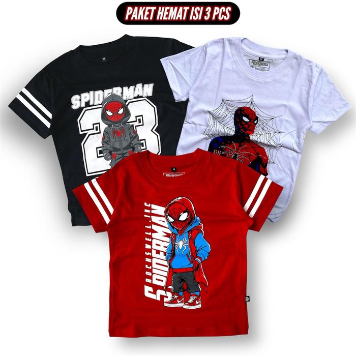 Paket Hemat Isi 3 Pcs Kaos Anak Karakter Motif Superhero Untuk Usia 4 - 12 Tahun Bahan Katun 30S - Random Tidak Bisa Pil