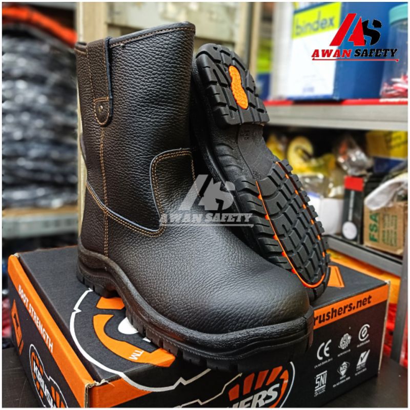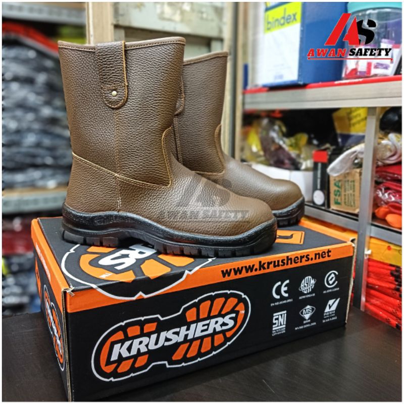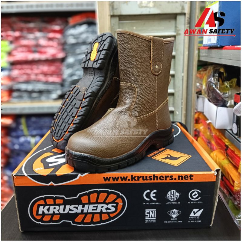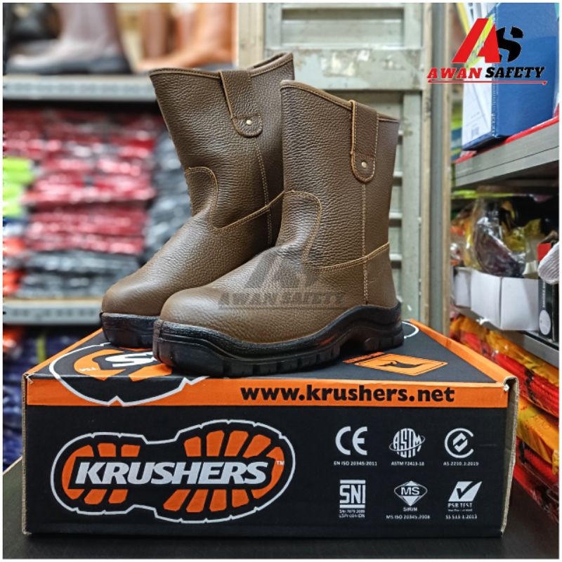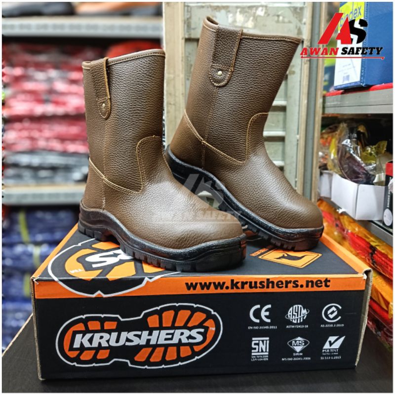 Sepatu Safety KRUSHERS TEXAS BROWN BLACK / Safty Boots Kerja Proyek KRUSHER Original