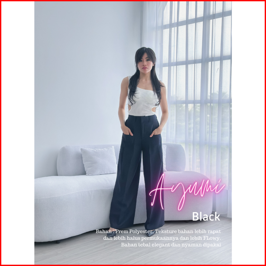 Cammomile Ha Neul Celana Highwaist 2303087 Celana Ha Neul Highwaist Loose Pants Trousers Celana Kerja Wanita Kantor Cela