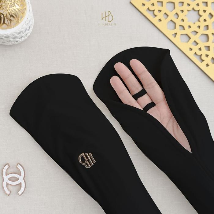 HIJABERLIN - Handsock Full Cover Sarung Tangan Sholat - Manset Umroh Aksesoris Haji & Umroh Set Premium - Black