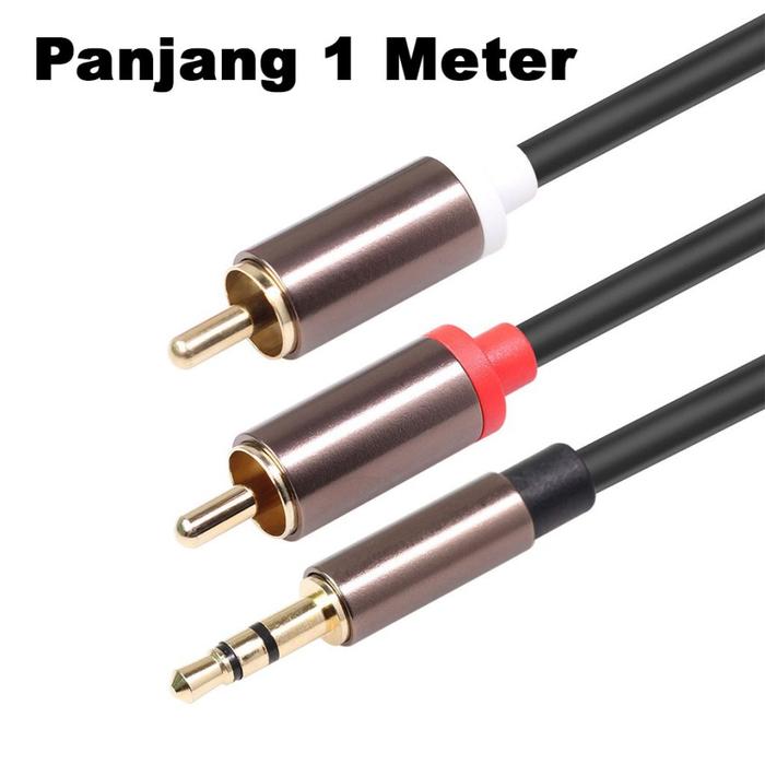HARGA MIRING ! KABEL RCA KE AUX 3.5 MM - KABEL RCA KE JACK 3.5 MM - FONKEN R1 GOLD HEADPHONE - 1 METER MURAH