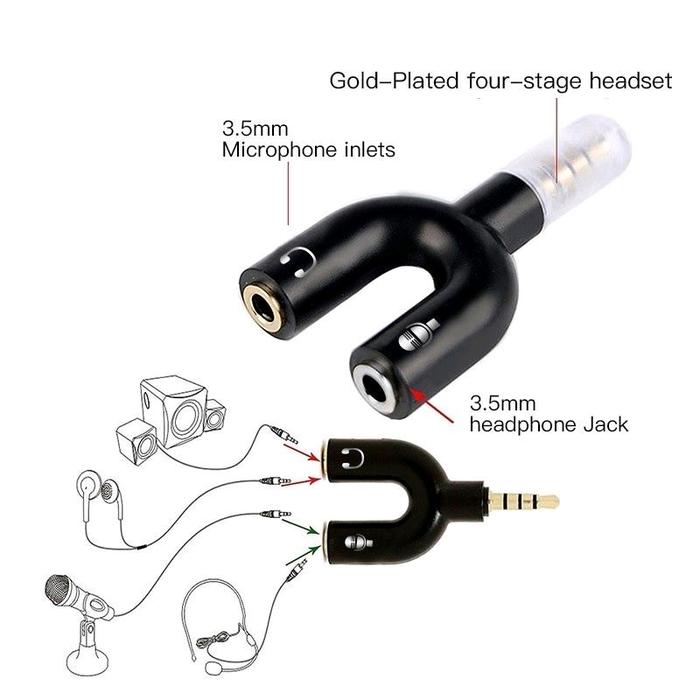 HARGA MIRING ! AUDIO SPLITTER 2 FEMALE TO 1 MALE 3,5MM AUX KABEL SPLITTER MIC AUDIO - MODEL U MURAH