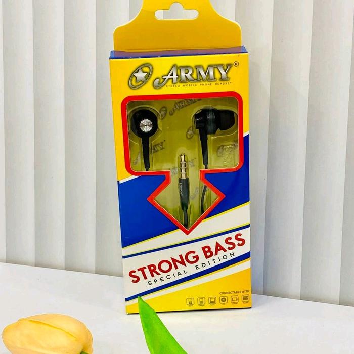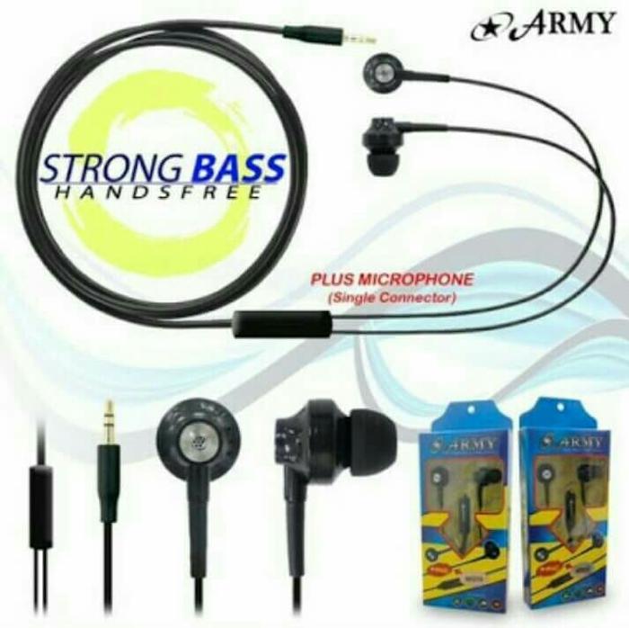 HARGA MIRING ! HEADSET HANDSFREE ARMY STRONG BASS SB MIC PREMIUM ORIGINAL ARMY EARPHONE TELEPON HITAM MURAH