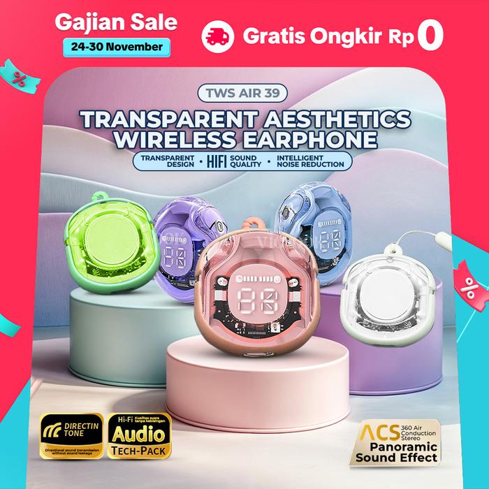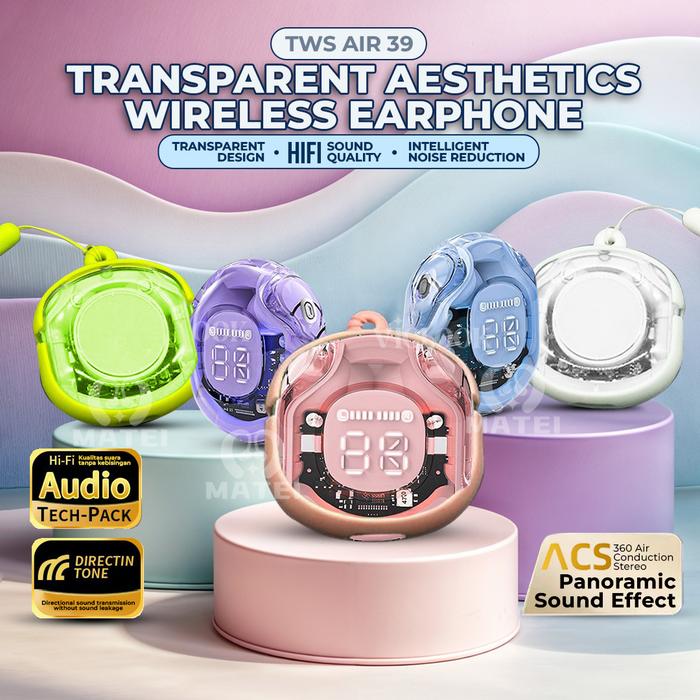 HARGA MIRING ! MATEI HEADSET BLUETOOTH AIR39 EARPHONE IN EAR HEADSET WIRELESS HIFI HD LED DISPLAY TWS - AIR39-BIRU MURAH