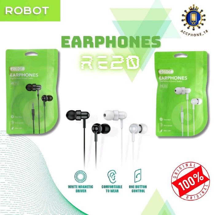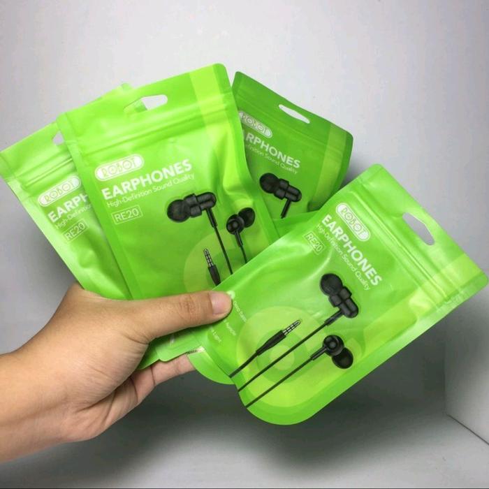 HARGA MIRING ! HANDSFREE/HANDSET / HEADSET ROBOT RE20 WIRED EARPHONE BASS ANDROID ORIGINAL - HITAM MURAH