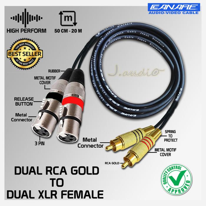 HARGA MIRING ! JAPAN STANDARD - KABEL AUDIO/KABEL POWER 2X XLR FEMALE TO 2X RCA GOLD - TJE - 5 METER MURAH