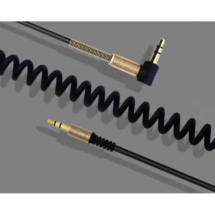 HARGA MIRING ! KABEL AUX HP SPIRAL JACK L 3.5MM AUDIO HANDPHONE KE SPEAKER DAN MOBIL AKSESORIS HEADPHONE - HITAM MURAH