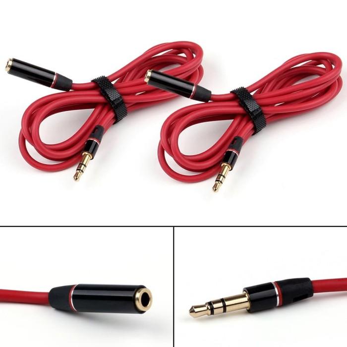 HARGA MIRING ! KABEL PERPANJANGAN AUX AUDIO JACK 3.5MM MALE TO FEMALE EXTENSION EXT 3 PIN 2 RING - MERAH MURAH