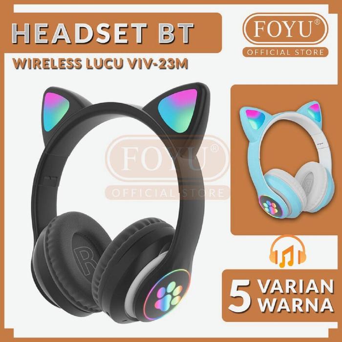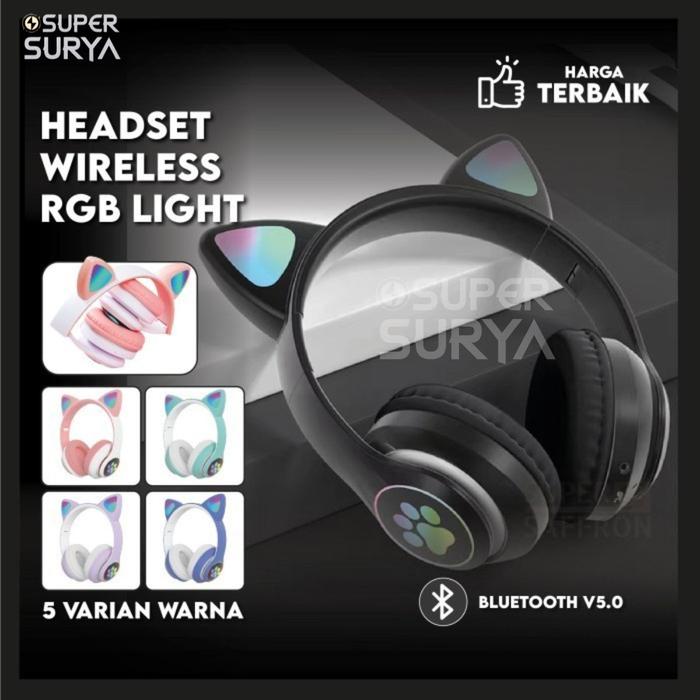 HARGA MIRING ! FOYUSHOP HEADPHONE BLUETOOTH TELINGA KUCING EARPHONE LED WIRELESS SUPER BASS - UNGU MURAH