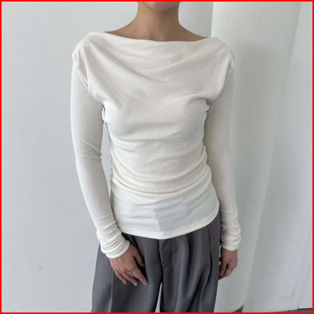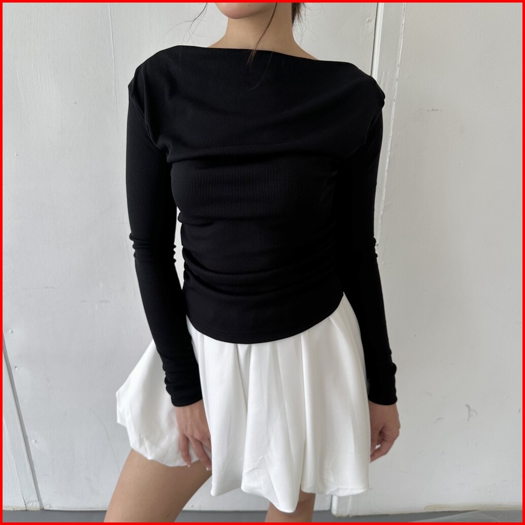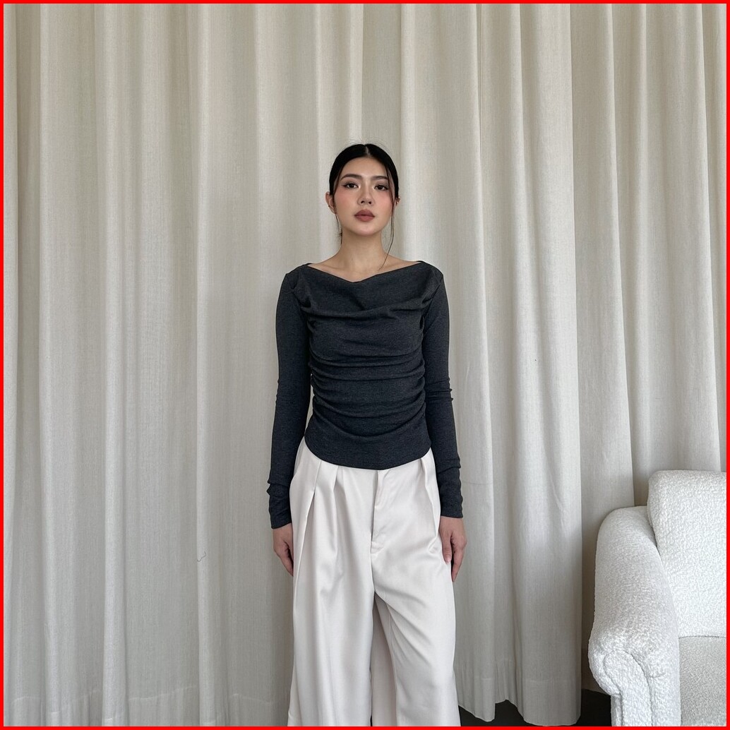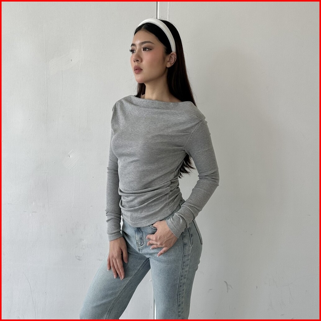 Alba Top - Atasan Knit Wanita Lengan Panjang Boat Neck Drape Cowl Korean Top Basic Baju Summer Ribbed Knit Rib Long Slee