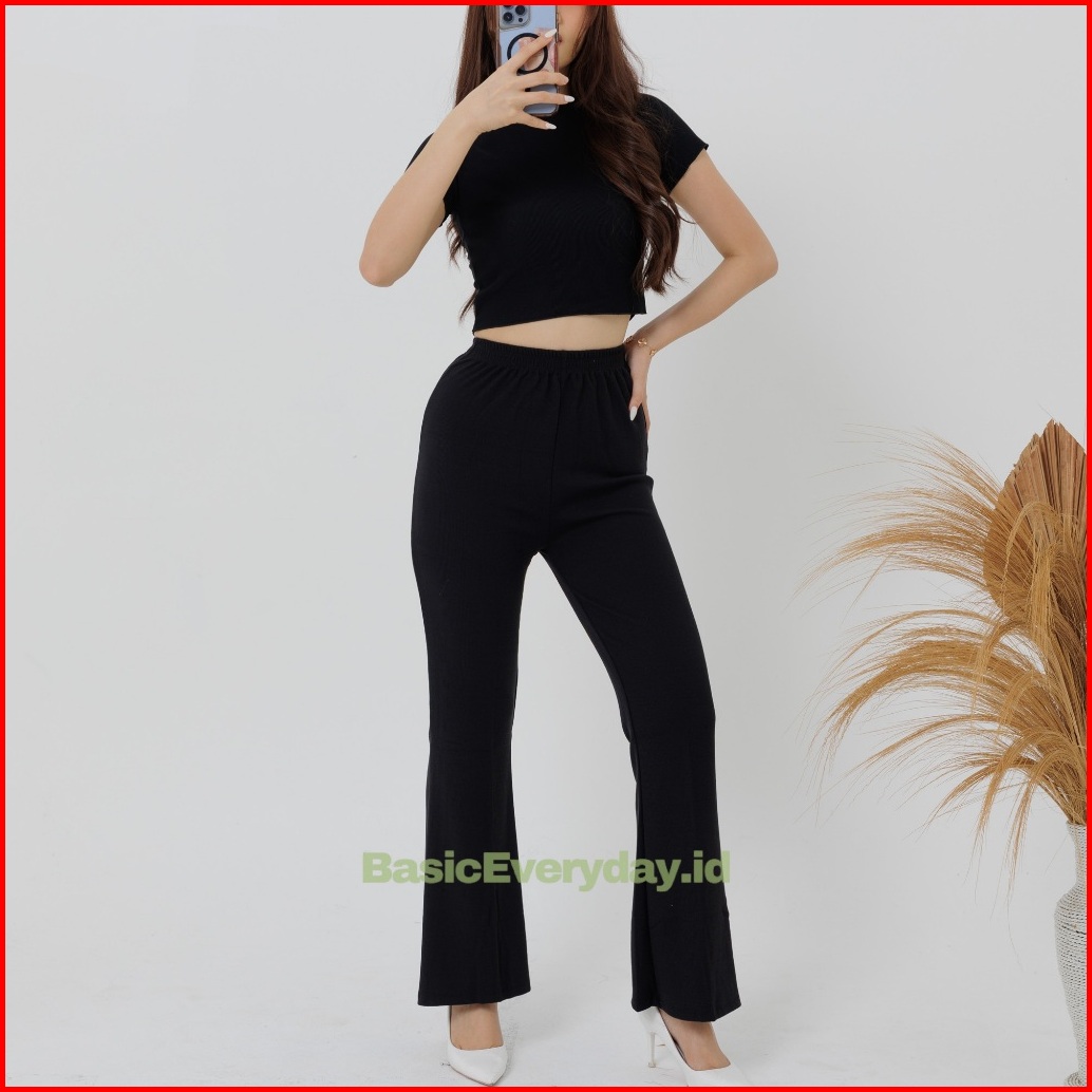 Basiceveryday Celana Cutbray Pants Wanita Basic Celana Rib Knit