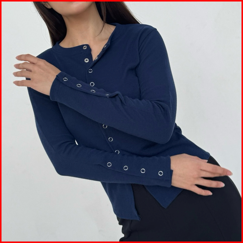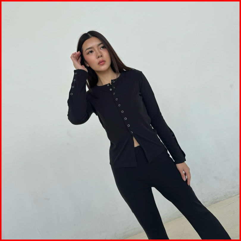 Alle Top Atasan Knit Wanita Lengan Panjang Kancing Basic Korean Snap Button Blazer Top Summer Baju Knit Kancing Rib Wani