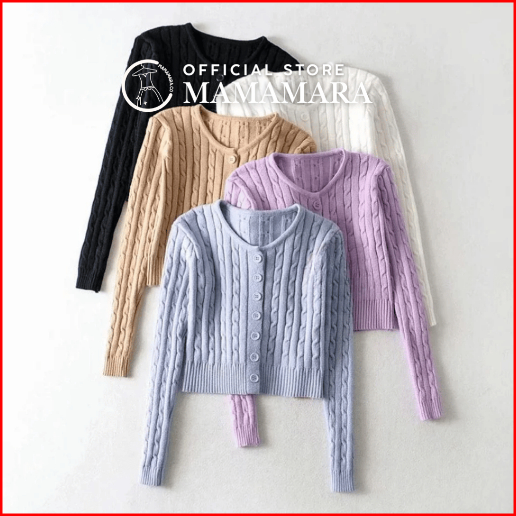 Mamamara - Premium Cable Knit Cropped Cardigan Ready Cardi Rajut Lengan Panjang Luaran Wanita Korea Polos