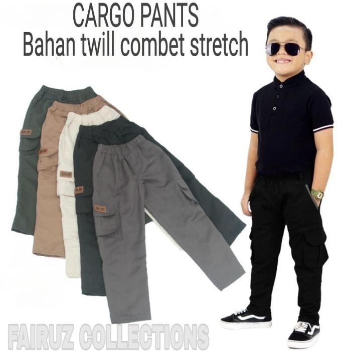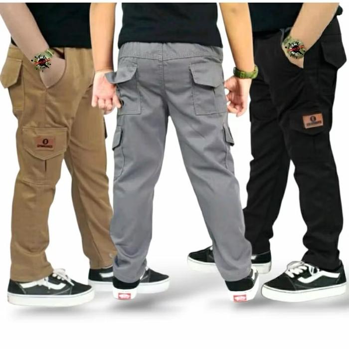 Celana Cargo Panjang Anak Laki Laki Usia 1-13 Tahun Bahan Twill Combed Premium Elastis - Hitam, 21 6 Th