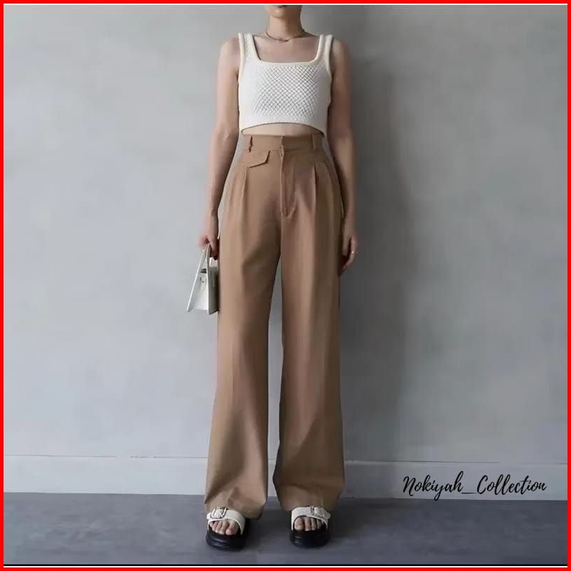 Celana Panjang Wanita High Waist Oro Pants Semi Wool Premium