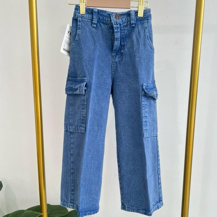 Cargo Kids Unisex - Cargo Jeans Anak Perempuan Dan Laki-Laki Warna Polos Celana Fashion - Cargo Kids Hitam, Size 4 3-4Ta