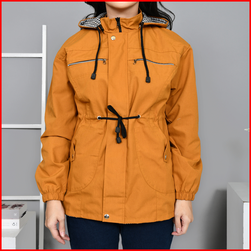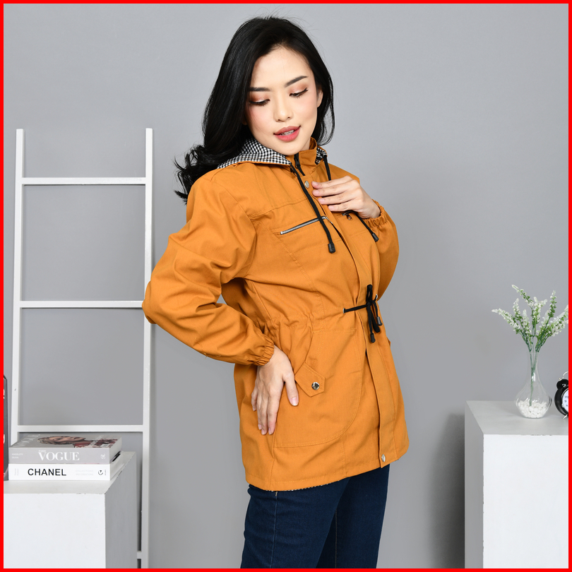 Jaket Parka Wanita Korean Style Bolak Balik Jumbo Warna Kuning Mustard Ukuran M Sampai 4xl
