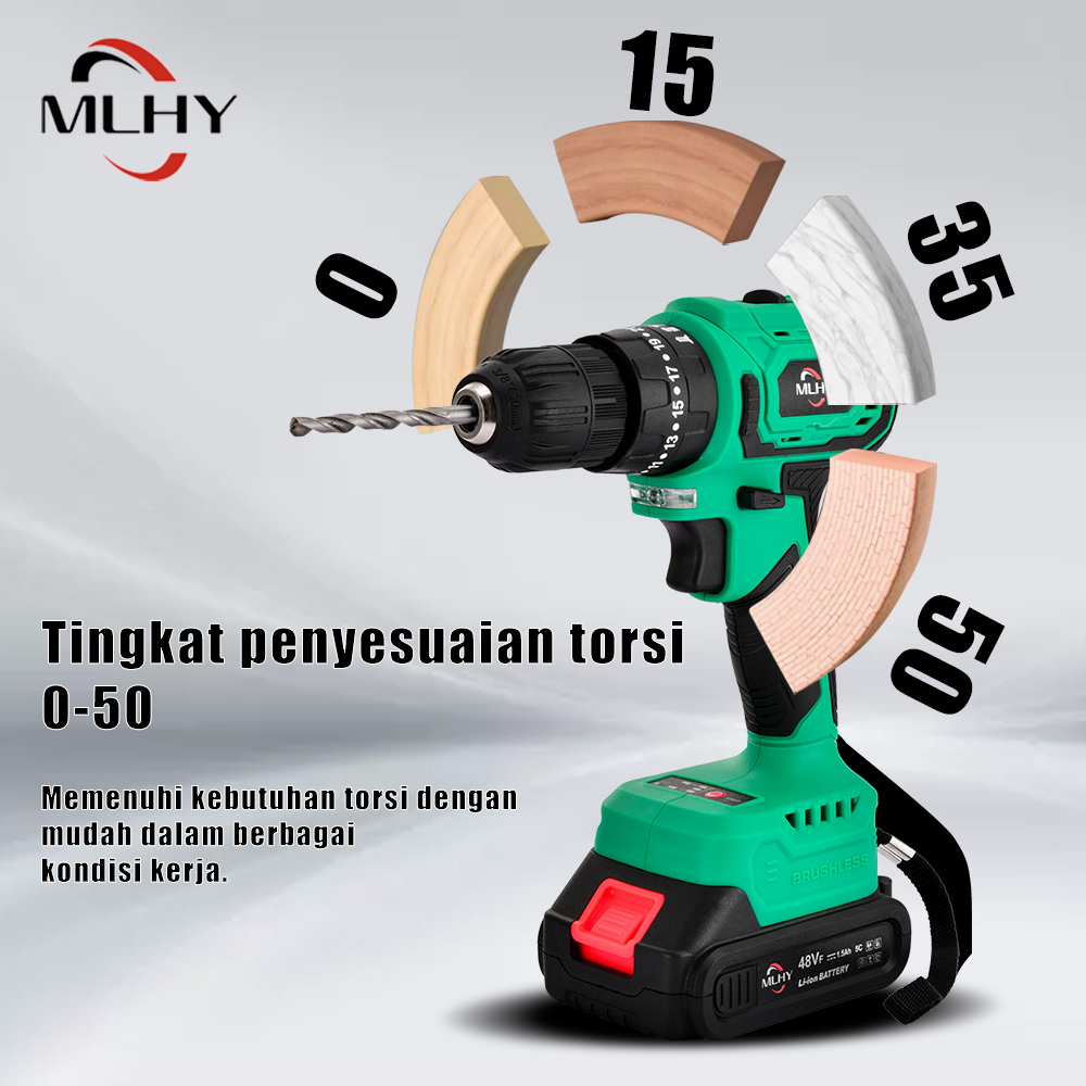 mall inline badgeMLYH Brushless Mesin bor 10mm bor Full Set Of Drill Impact Cordless Electric Drill 48VF 2Baterai Revers