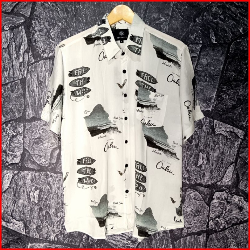 Kemeja Pria Hawai Kemeja Pantai Abstrak Vintage Casual Lengan Pendek Retro Bahan Katun Rayon Premium
