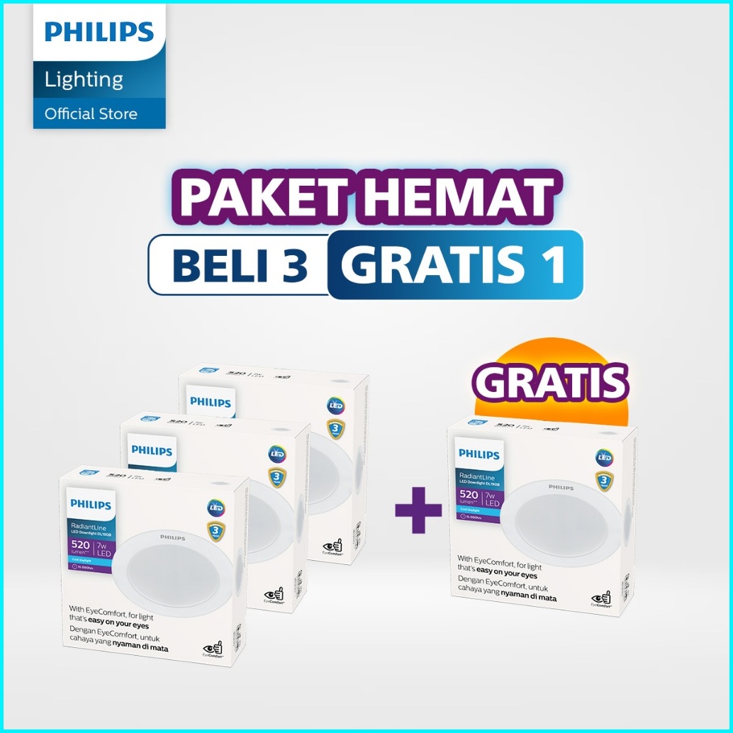 Philips Paket Lampu Lebih Cuan Beli 3 Gratis 1 Led Downlight Dl190b 7w 6500k Putih