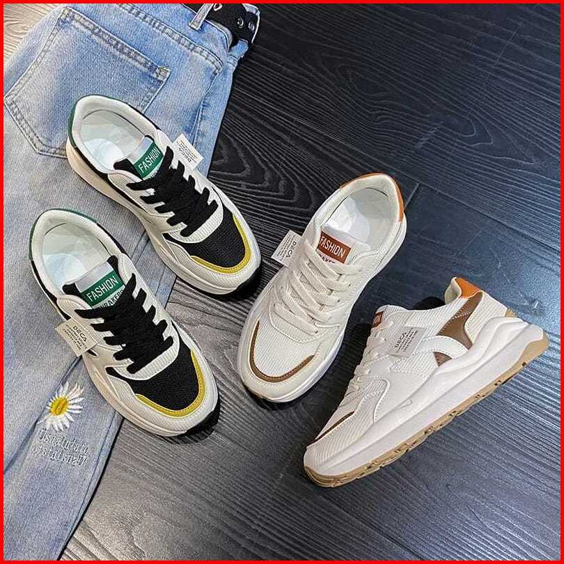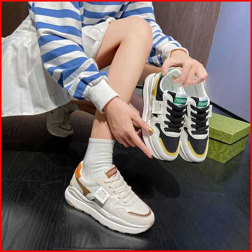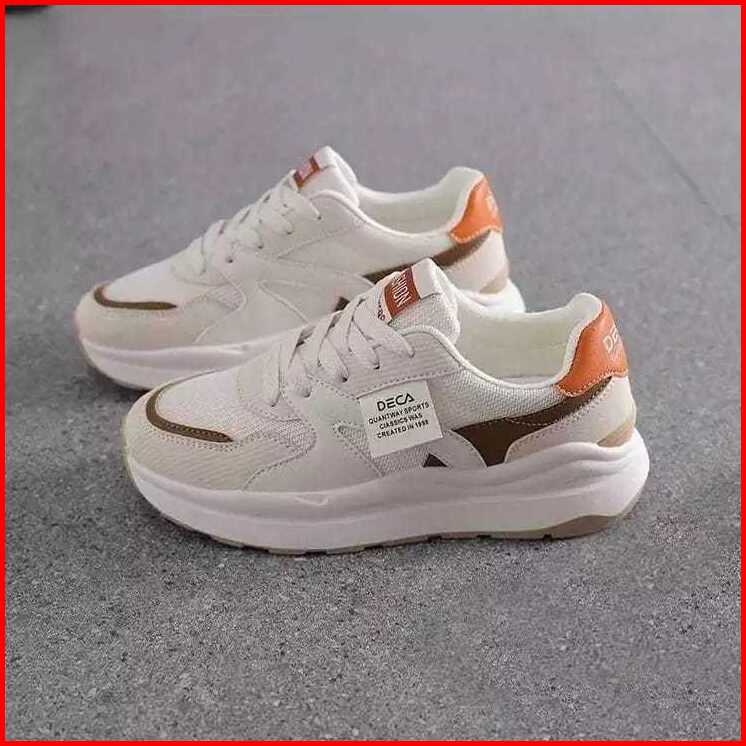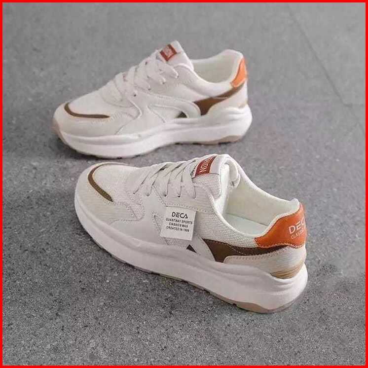 Sepatu Olahraga Wanita Sneakers Casual Putih Coklat Terbaru Kekinian