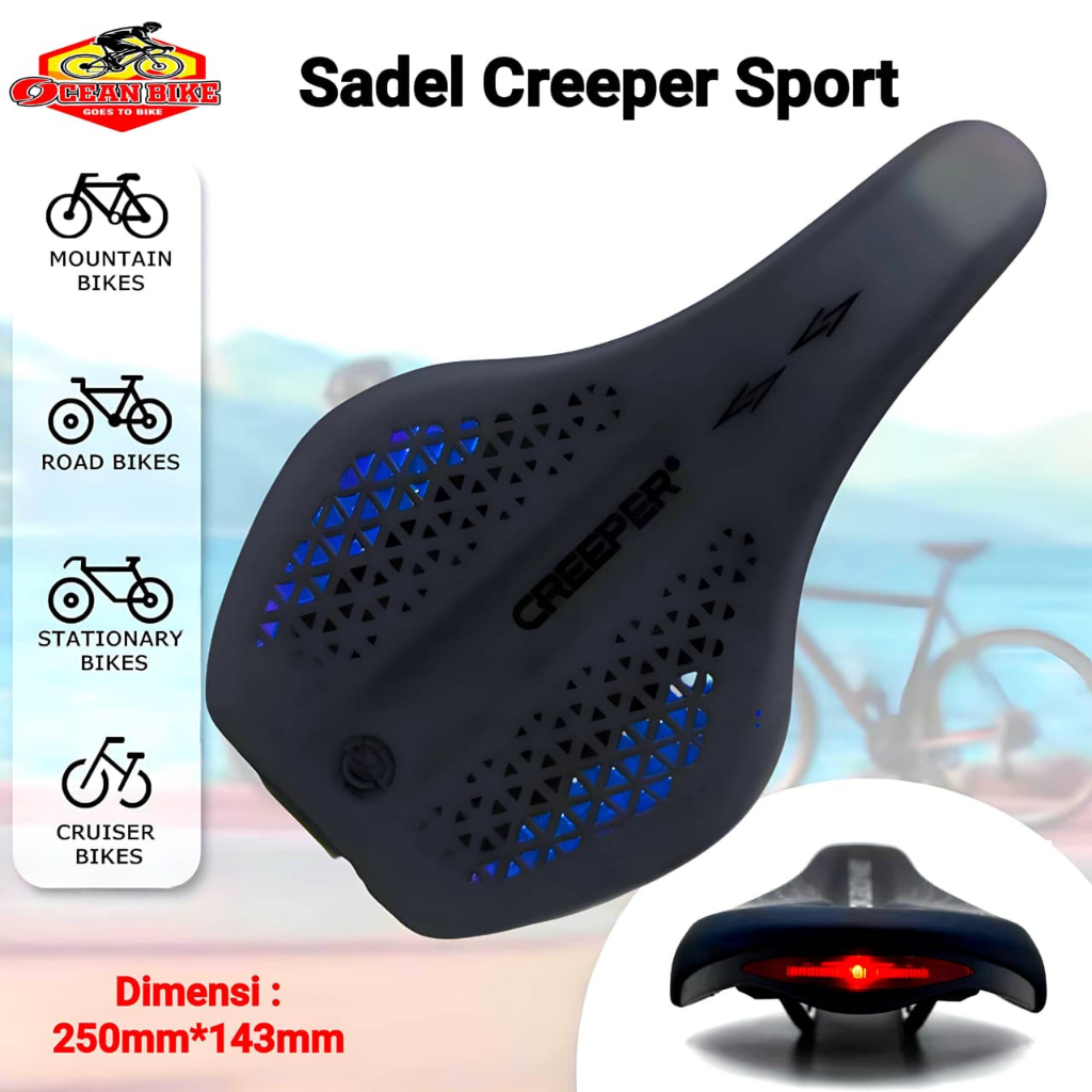 CREEPER Sadel Sepeda Jok Saddle MTB Road Bike Statis Listrik Sport Empuk Built In Lampu Belakang