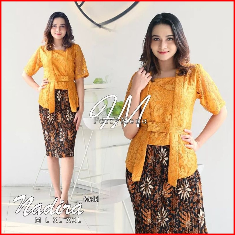 Set Kebaya Kutu Baru Modern Atasan Kebaya Brokat Nadira Tangan Pendek