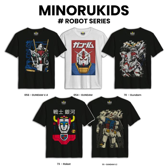 T-Shirt | Kaos Band Anak Unisex | Series Gundam Premium Cotton Combed 30S Distro Anak - Putih-54, S 0-2 Tahun