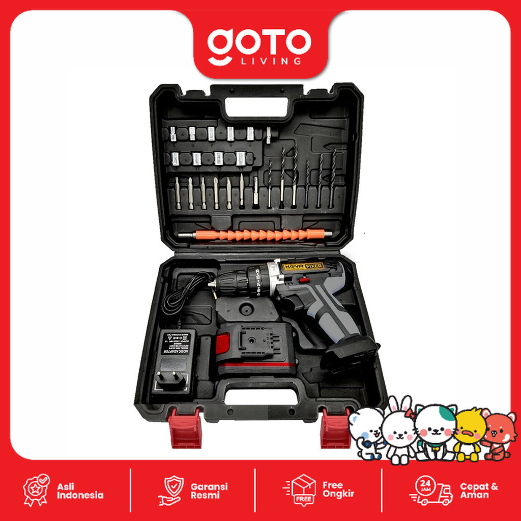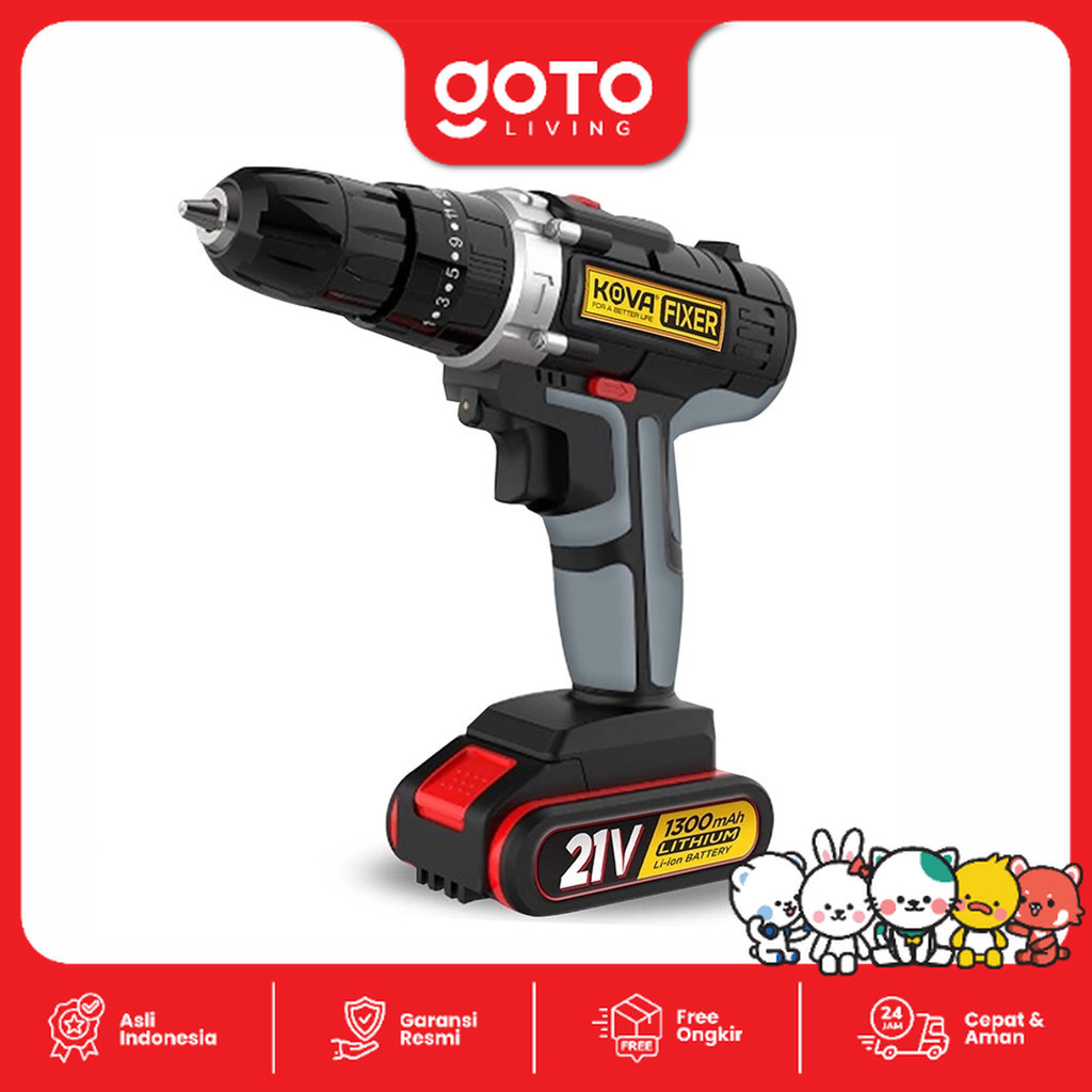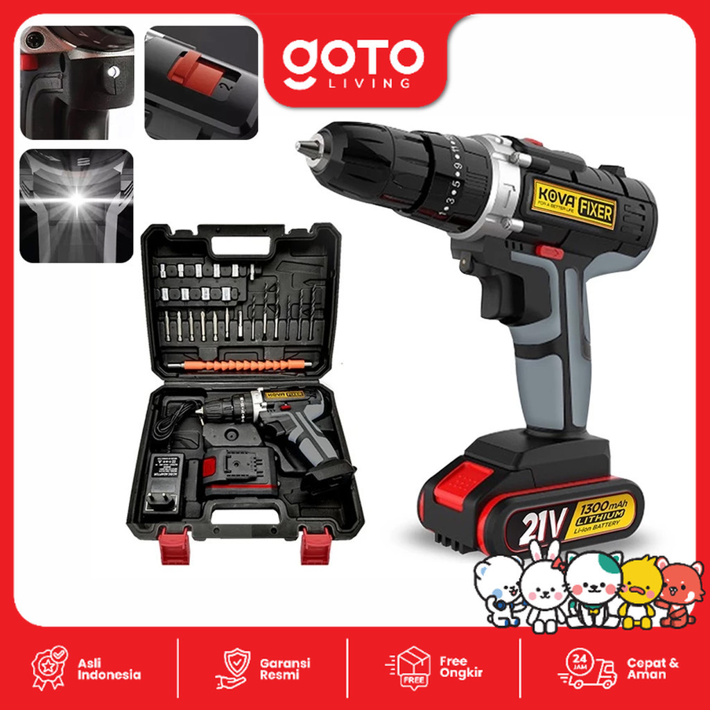 mall inline badgeKova Fixer Cordless Drill 10mm Set Mesin Bor Tangan Baterai Tembok 21V