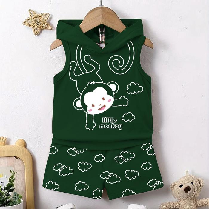 Setelan Singlet Hoodie Anak Laki Laki/Baju Anak Cowok Singlet Topi - Sing.Topi Dinosaur/Maron, Xl12Kg-14Kg