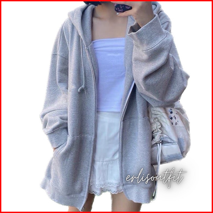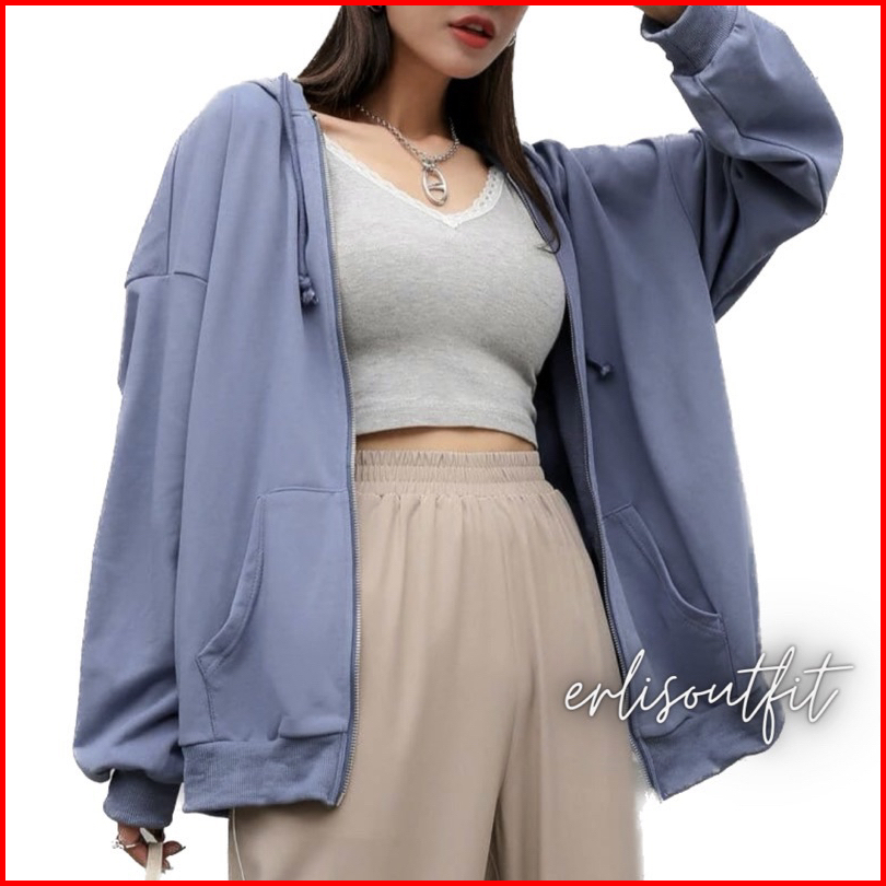 Oversize Hoodie Polos Jaket Zipper Sweater Carla Wanita Korea Resleting Zip Up