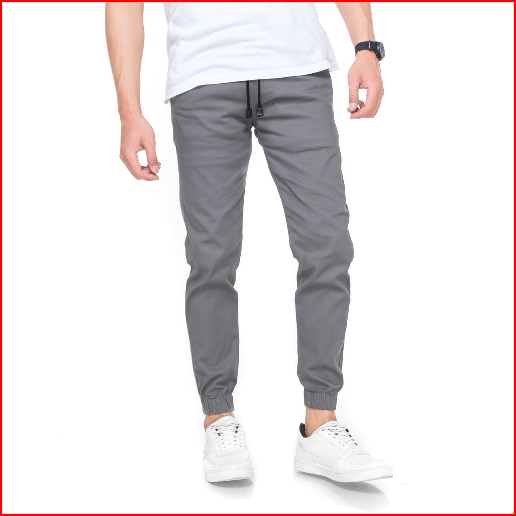 Celana Panjang Joger Polos Pria Slim Fit Bahan Katun Premium