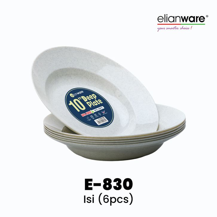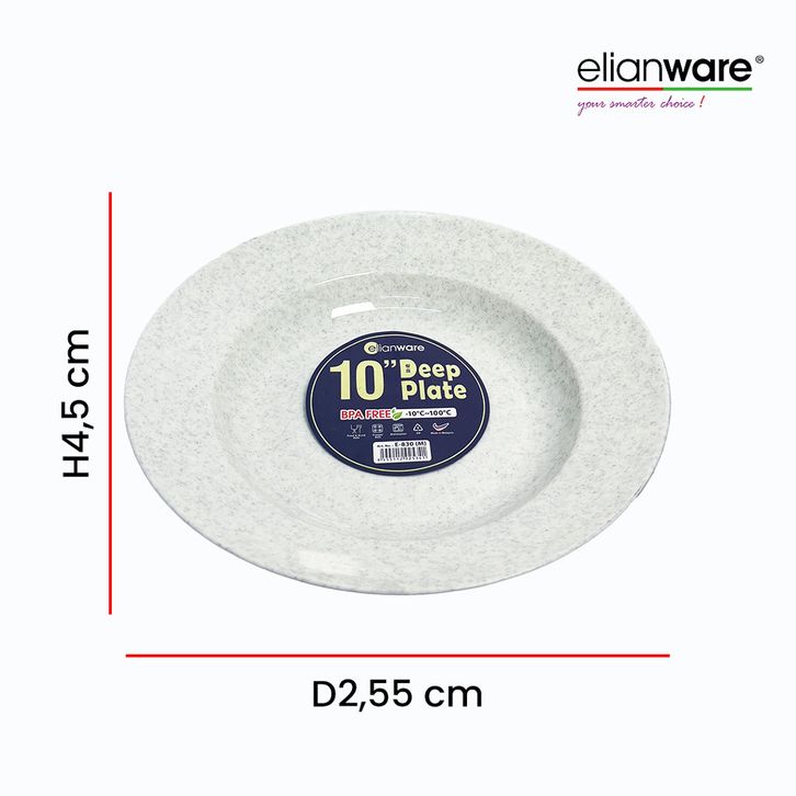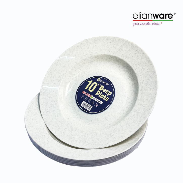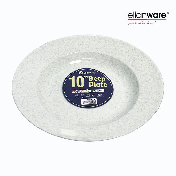 Elianware 6 PCS 10” inch Marble Deep Plate Rice Plate BPA Free & Food9rade, E-830/M