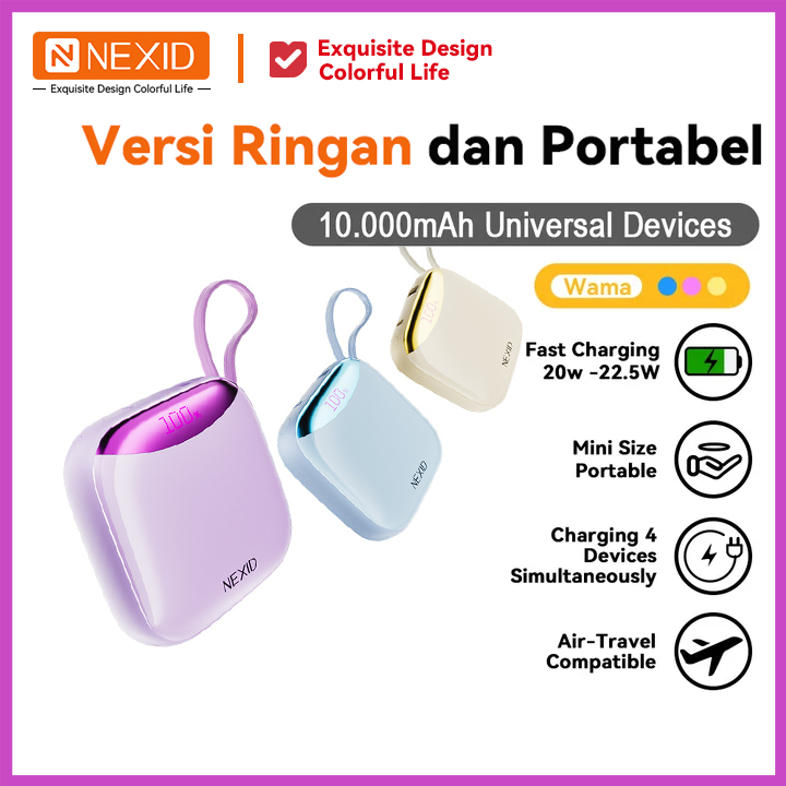 NEXID Fast Charging 22.5W Powerbank mini 10000mAh Colorful Built in 2 Kables Power bank