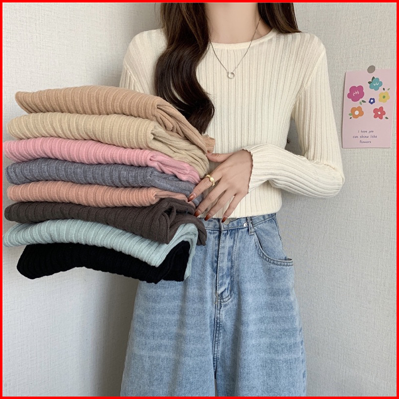 Asoka Jiso Top Inner Rajut Oneck Kerah Bulat - Atasan Wanita - Knit Korea