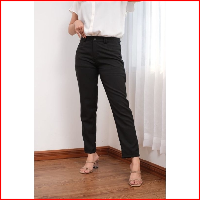 Celana Kantor Wanita Wol Semi Stretch Kekinian