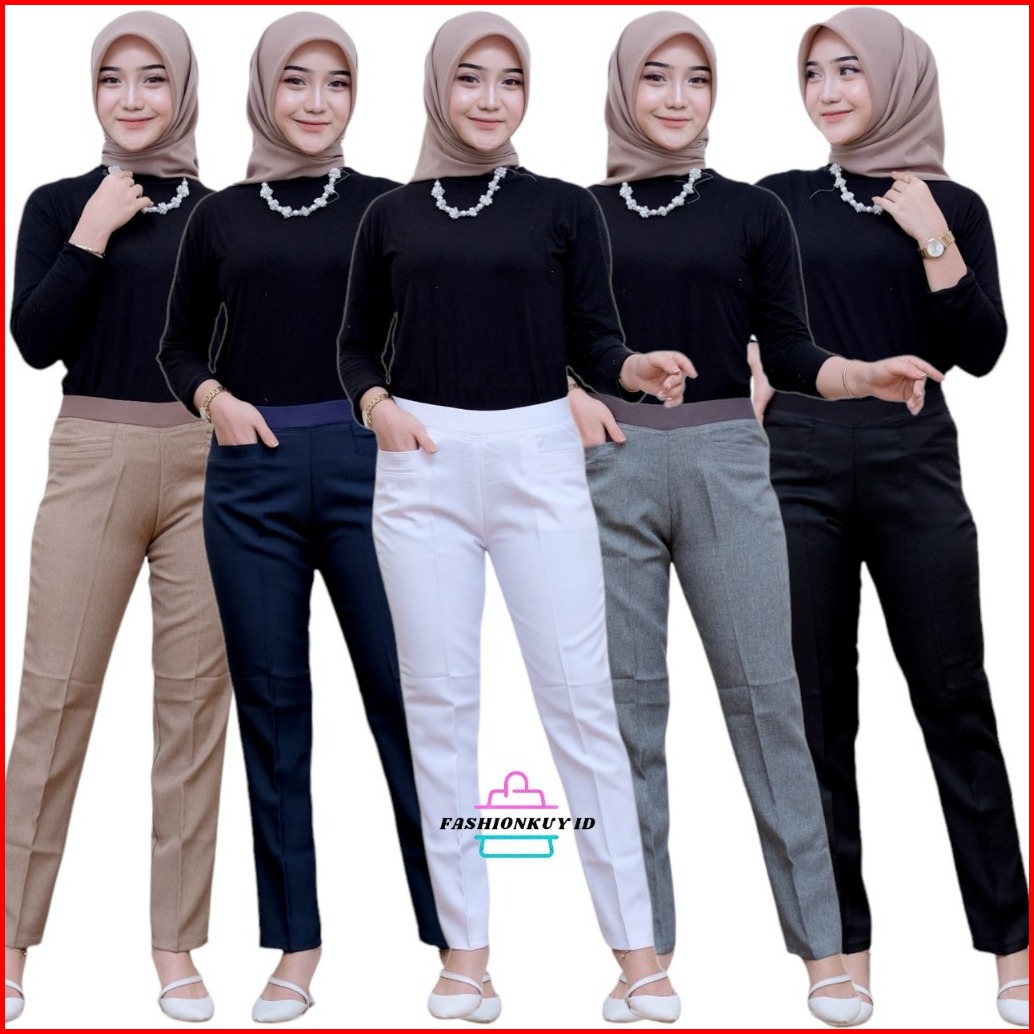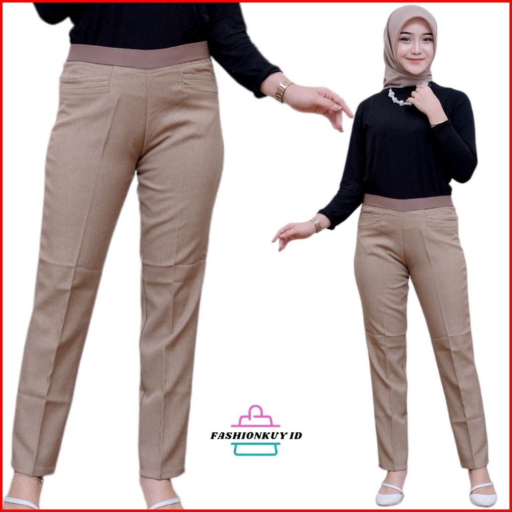 Celana Kerja Kantor Wanita Pinggang Karet Standar Dan Jumbo
