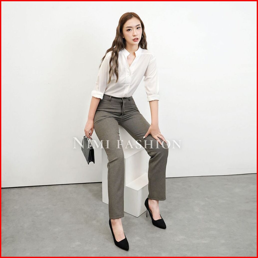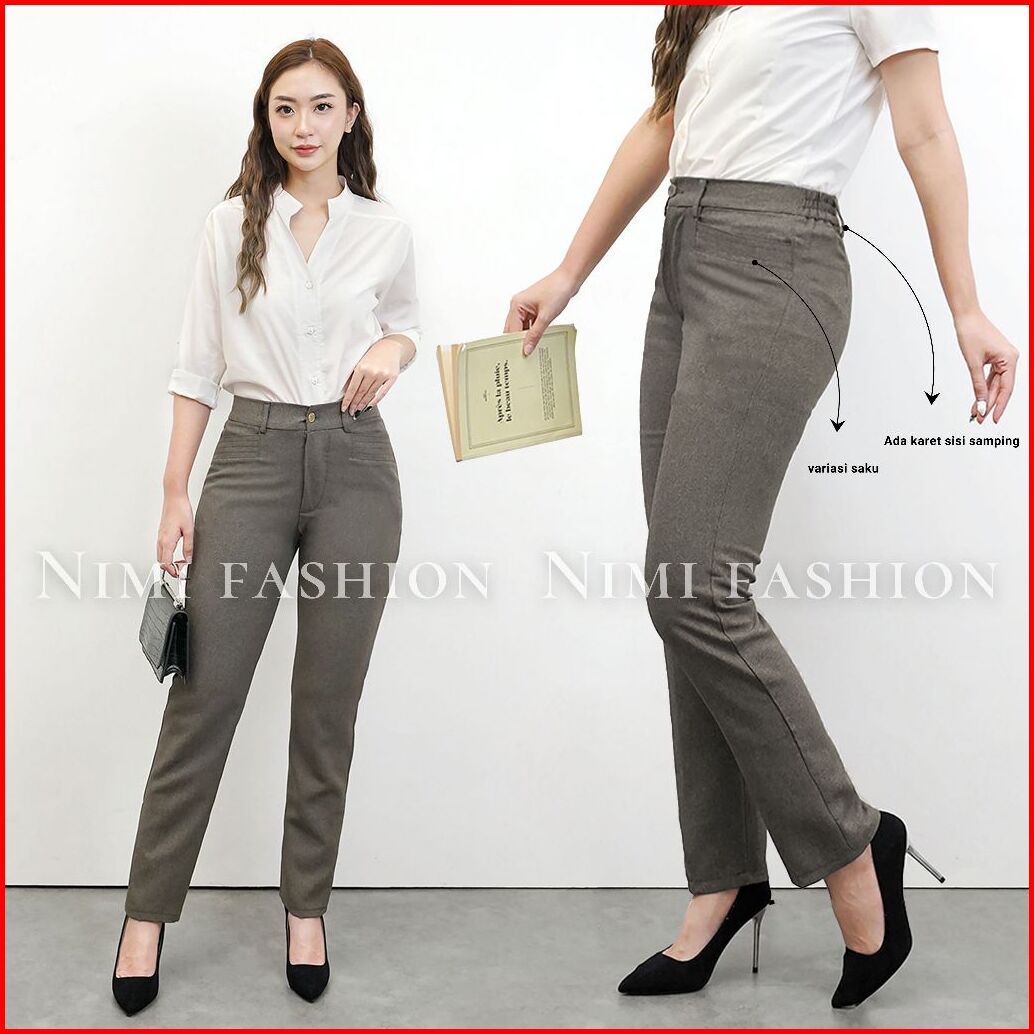 Nimi - Celana Kerja Wanita Kantor Bahan Pinggang Kancing Karet Samping