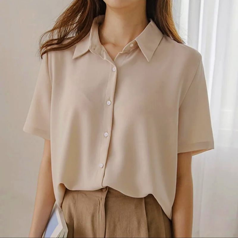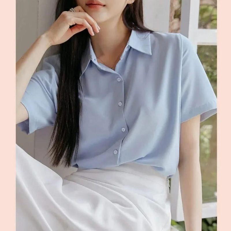 KEMEJA PENDEK WANITA Kemeja Pendek Wanita Kemeja Polos Hitam Putih Pendek Wanita Kasual Basic