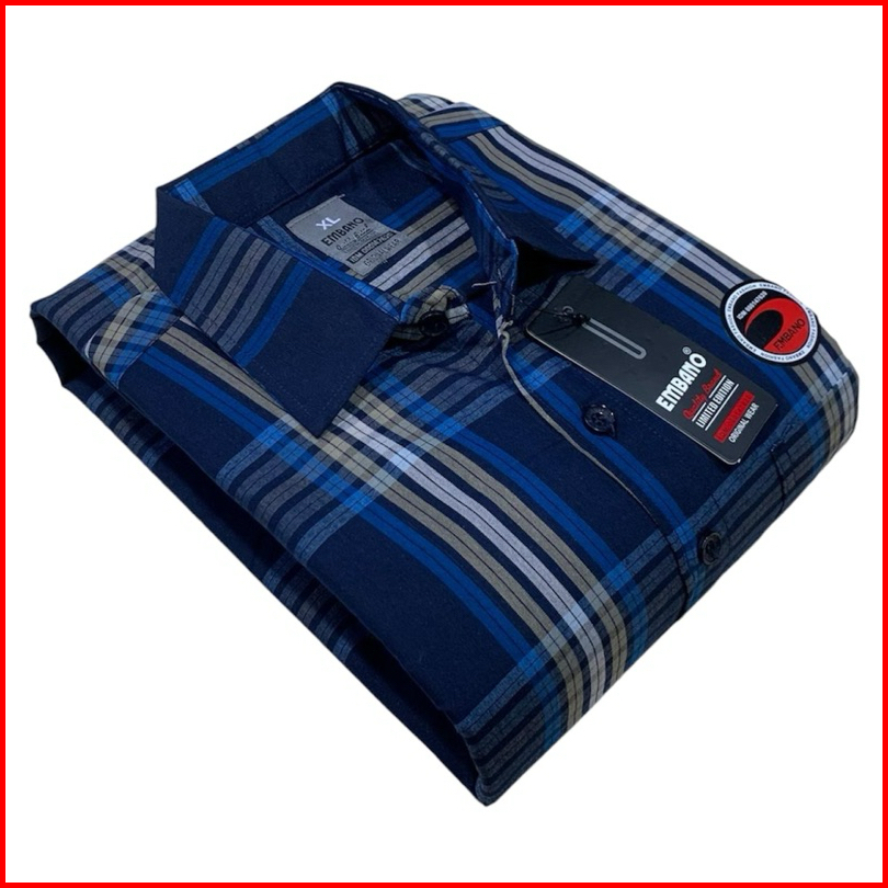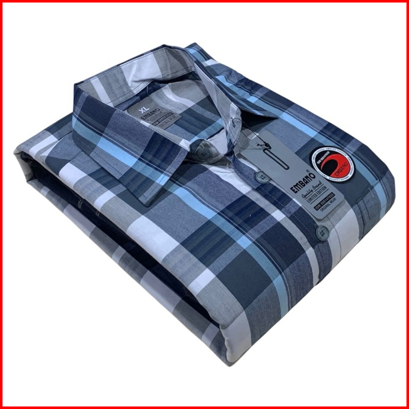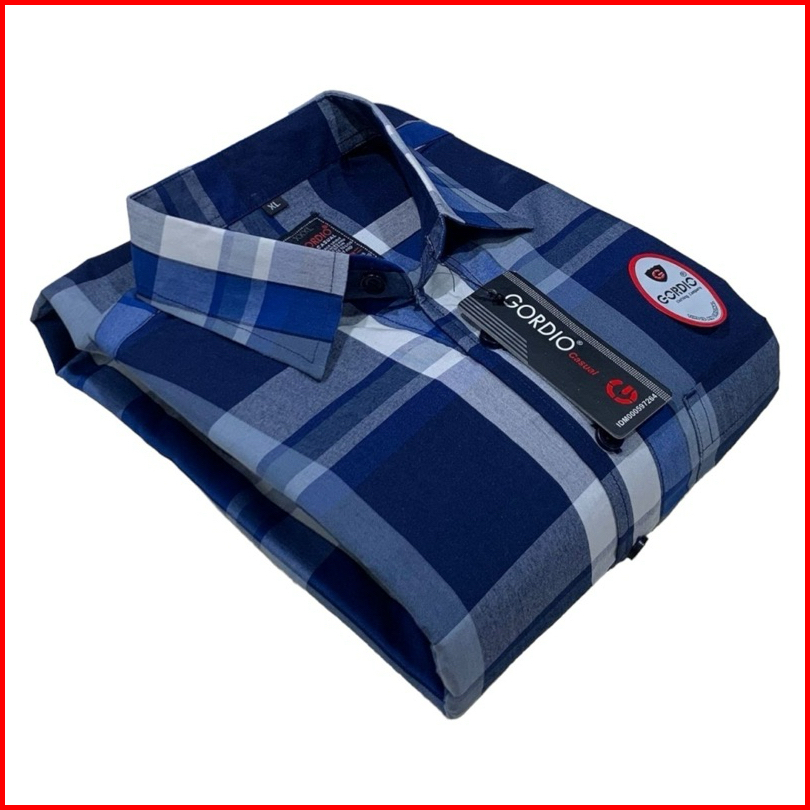 Kemeja Kantor Pria Polinasi Lengan Pendek Motif Kotak Salur Katun Premium Hem Formal M L Xl
