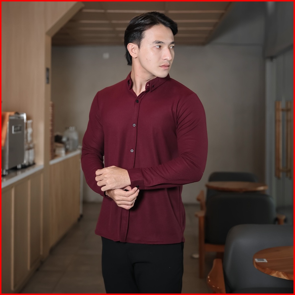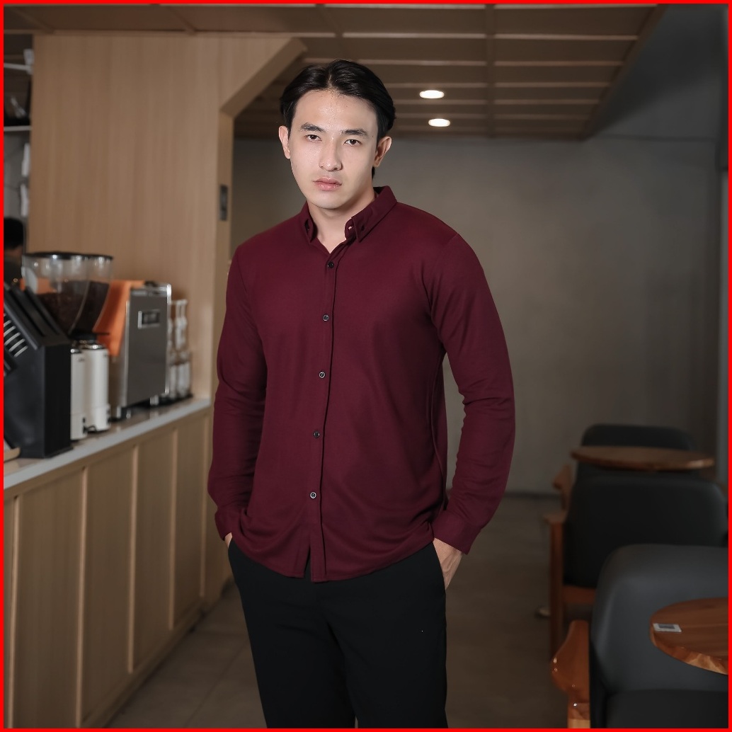 Stylelaki Lapique - Kemeja Burgundy Pria Formal Lengan Panjang Slim Fit Anti Kusut Nyaman Dan Lembut