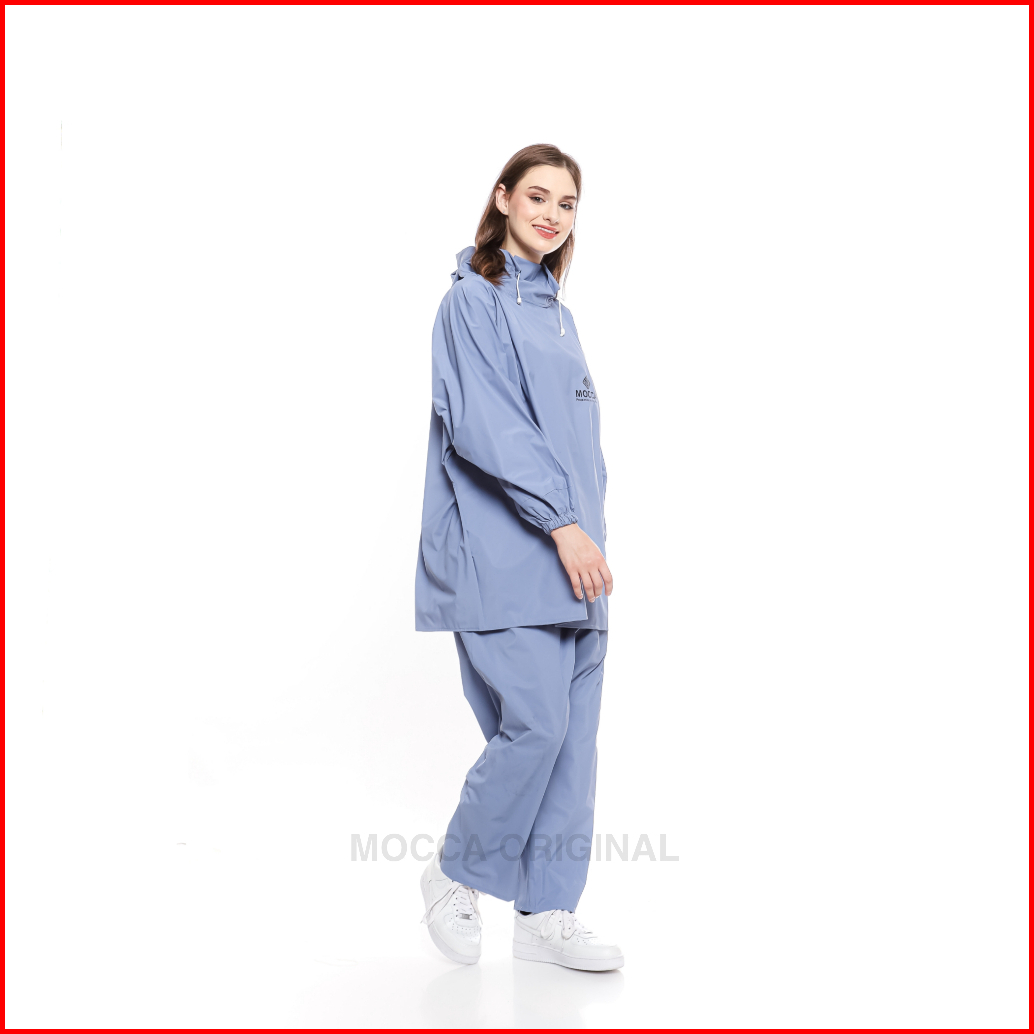 Mocca Jas Hujan Terbaru Model Hoodie Bahan Pvc 0 25 Tebal Elastis Setelan Pria Wanita Anti Rembes