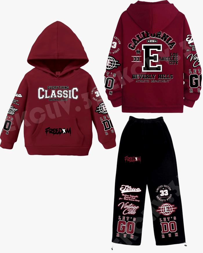Setelan Skena Hoodie Motip Varsity Terbaru Anak Laki-Laki/Perempuan Usia 2-13 Tahun / Setelan Hoodie Baggy Pants Anak La