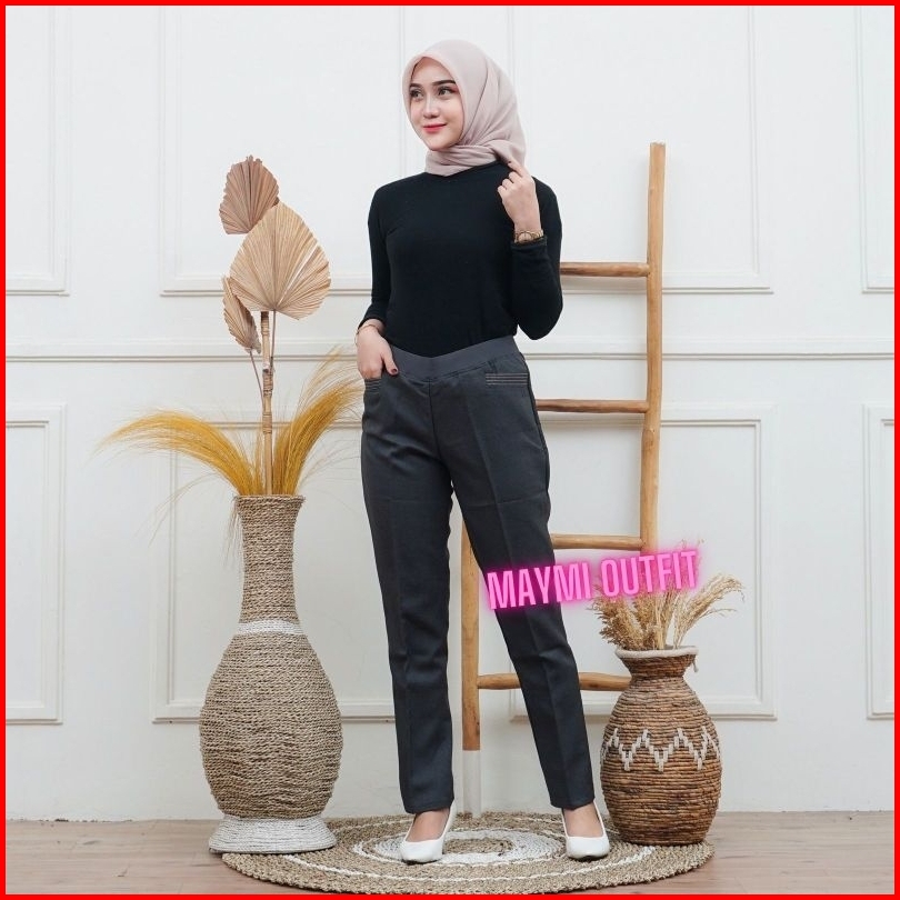 Maymi Outfit Celana Kantor Kerja Pinggang Karet Wanita Jumbo