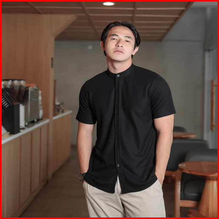Kemeja Hitam Pria Casual Lengan Pendek Slim Fit Anti Kusut Nyaman Dan Lembut - Stylelaki Lapique