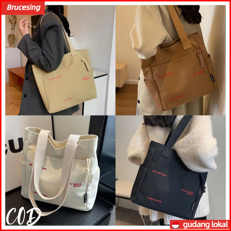 Tas Tote Bag Wanita College Totebag Kanvas Tas Bahu Wanita Tas Kantor Tas Sekolah Tas Korean Style