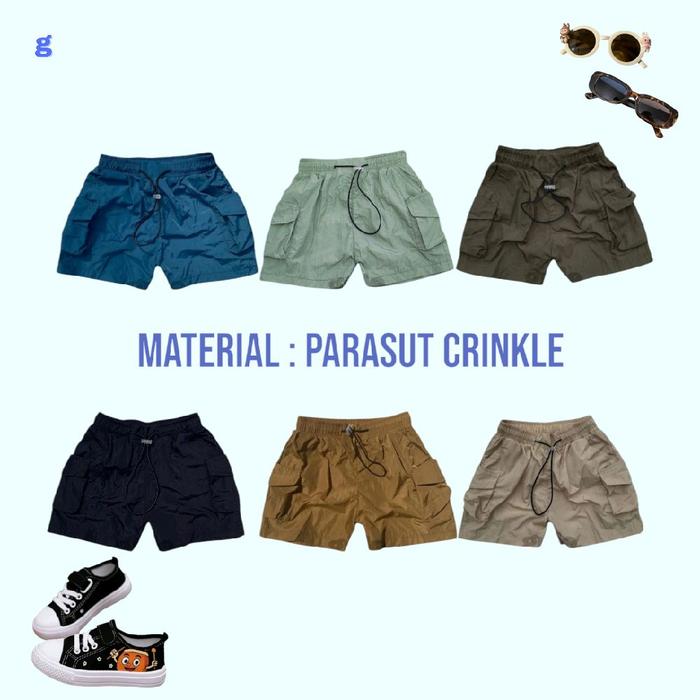 Celana Pendek Anak/Celana Cargo Pendek Anak Laki-Laki Dan Perempuan Bahan Dusky Crinkle Parasut/Celana Anak Usia 1-10 Ta