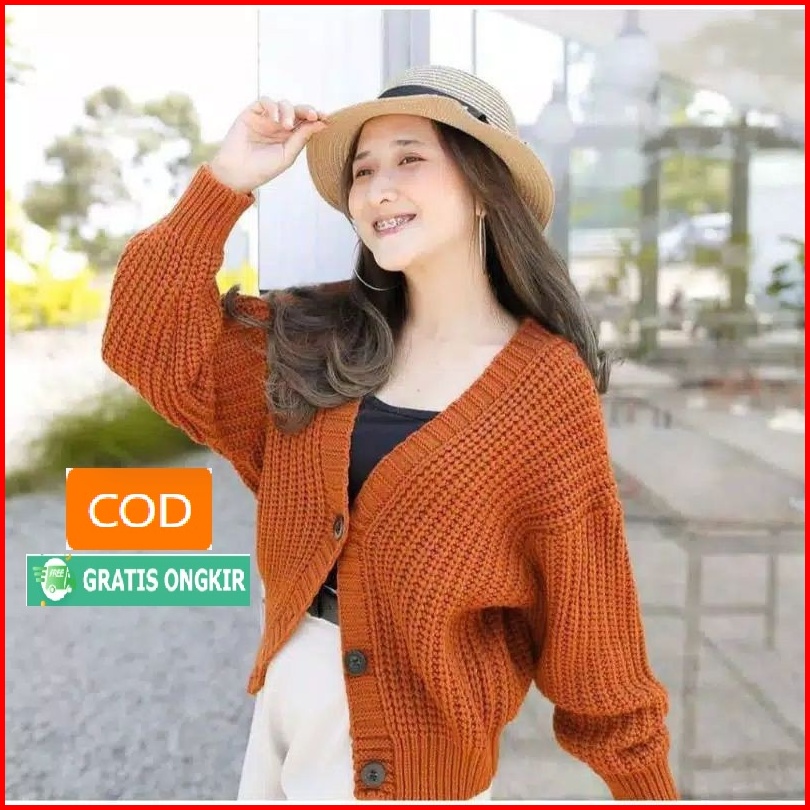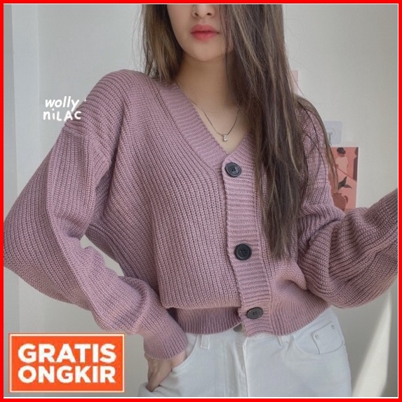 Cardigan Rajut Wanita Wolly Crop Cardigan 7 Gauge Ellena Basic Outwear